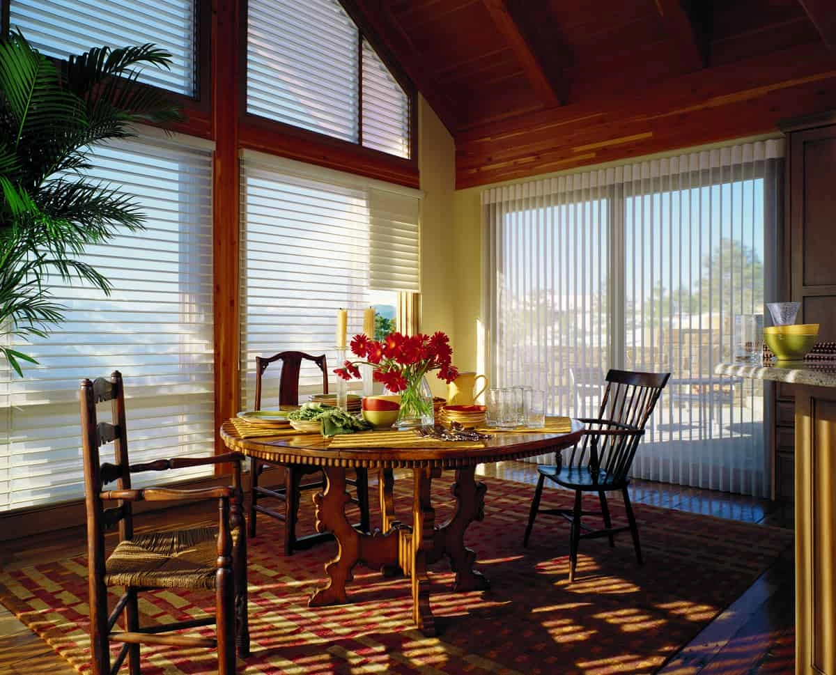 Not only will the Silhouette® provide the benefit as mentioned above, but simply placing them on your windows can also introduce a new level of UV protection. Many of our fabrics can even filter up to 88% of the sun's harmful rays, which is important if you design a space with flooring or furniture prone to fading or discoloration. As you browse our selection of fabrics, you'll be able to consider a range of colors such as Capri, Pesto, and more. As a result, enhancing your dining room windows is always a creative process from beginning to end.