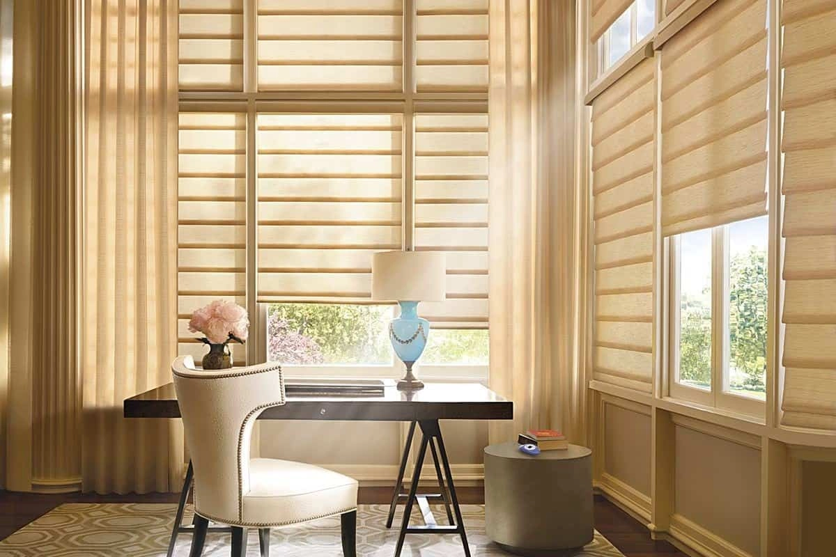 Pirouette® Sheer Shades may instead be ideal as they can be gracefully repositioned. The fabric vanes are attached to a single backing, which means you can expect fluidity each time they move. And just like with all of our Hunter Douglas offerings, these are highly customizable thanks to our range of colors, vane sizes, and more.