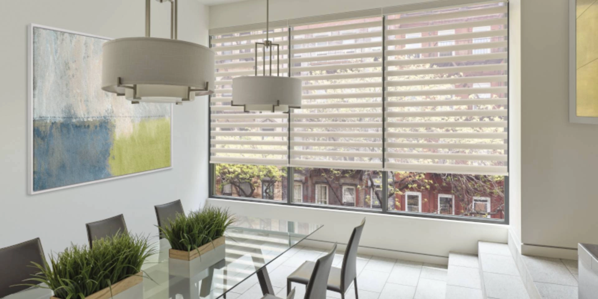 - Parkland® Wood Blinds: A traditional horizontal blind crafted from sustainably harvested, genuine hardwood. You can also upgrade to automated dining room blinds with PowerView® Automation.