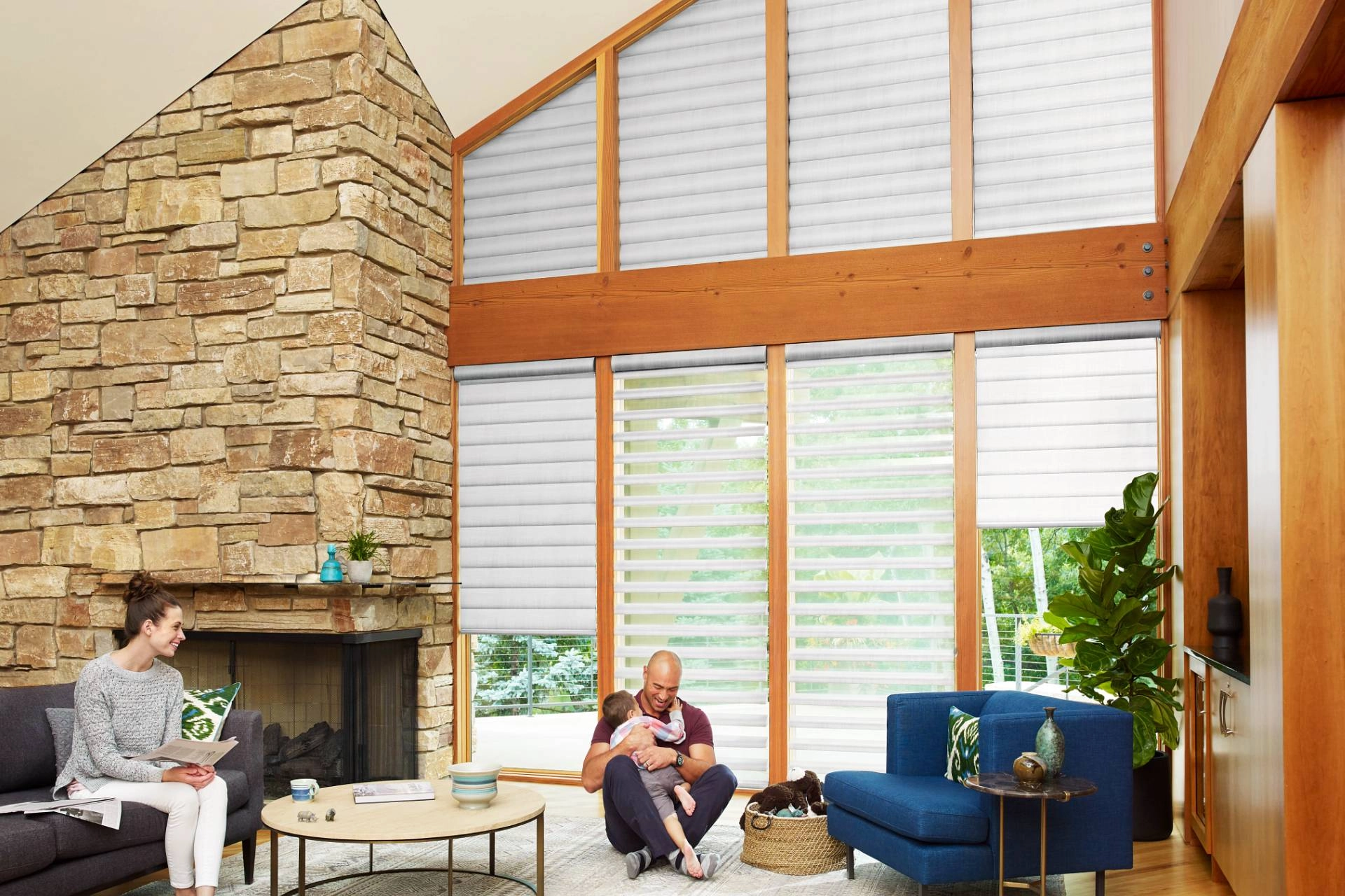 This last option is one of the industry’s most energy-efficient and versatile window treatments: Hunter Douglas Duette® Cellular Shades regulate room temperatures in cold and warm climates. When lowered, they trap air in honeycomb-like pockets, creating barriers that can help reduce energy usage and power bills.