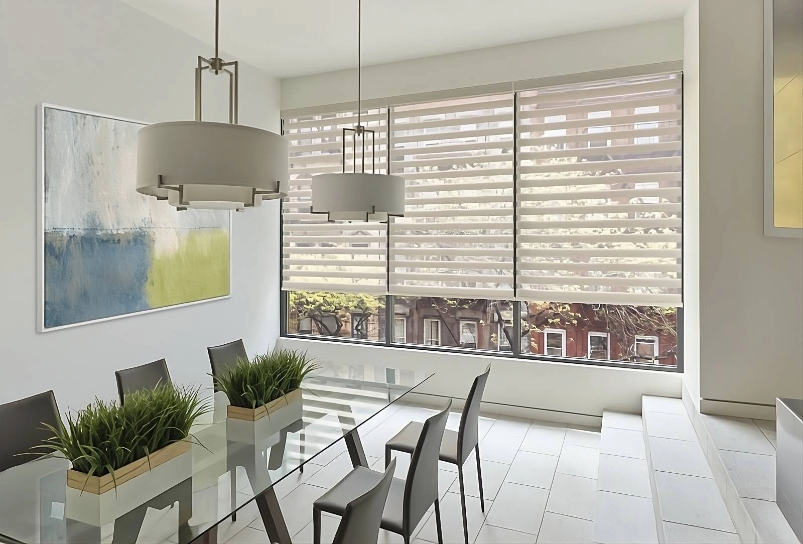 - Banded roller shades are design statements with adjustable privacy and light control.